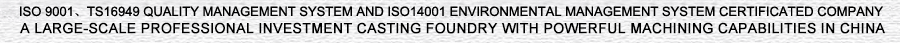 Specializing in the manufacturing of lost wax investment castings and machined parts in carbon steel and alloy steel, our company is a large-scale professional investment casting foundry with powerful machining capabilities in China.Welcome you to our web site, we hope you enjoy your visit.
